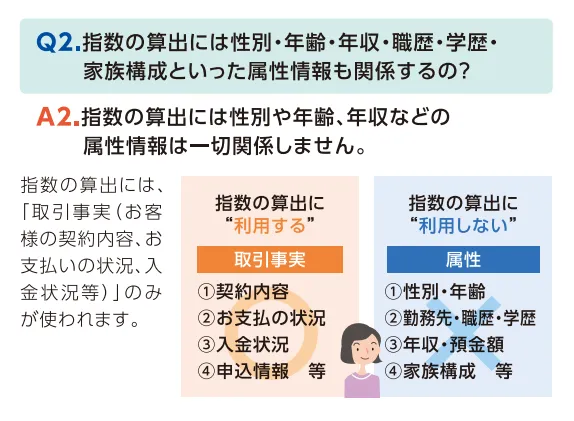 - クレジットカードの枚数と思われる。多いよりは少ない方が指数が上がると思われる。多いほど危険な人物と思われがち。