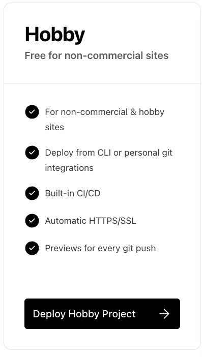 Vercel では以下のように非商用利用・趣味のサイトの制限がされており、詳細を確認すると Google アドセンスも禁じられています。