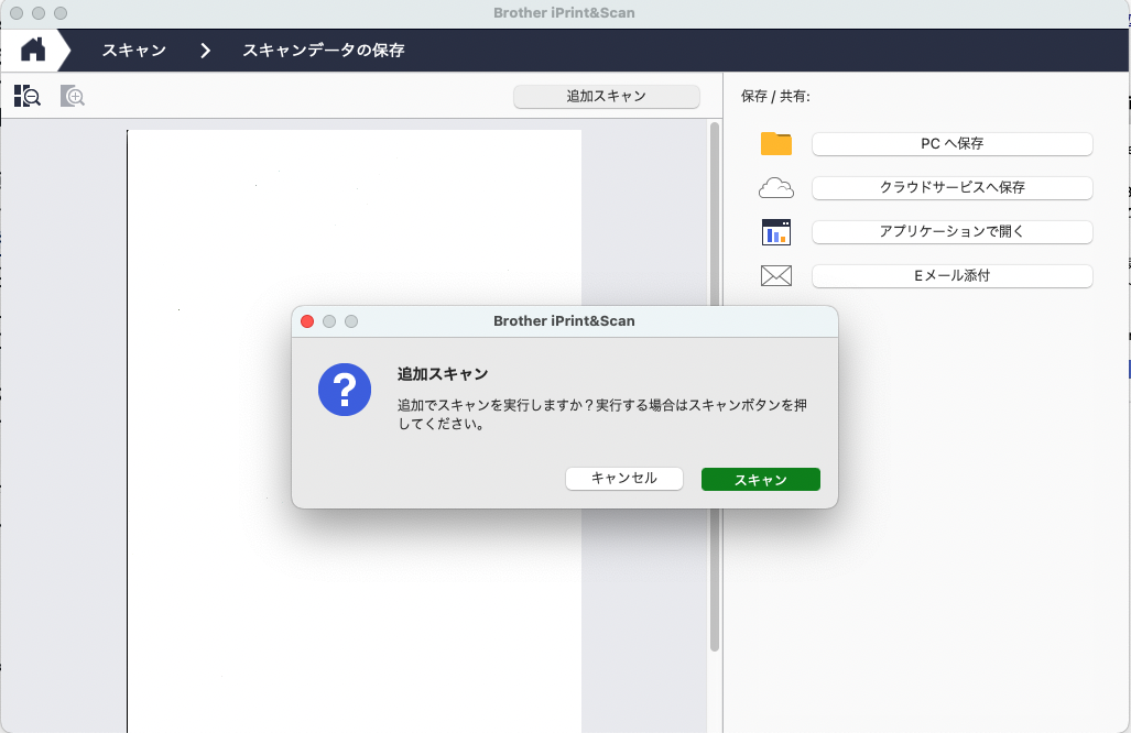 Brother のソフトウェアを使うと以下のように続けてスキャンができます。